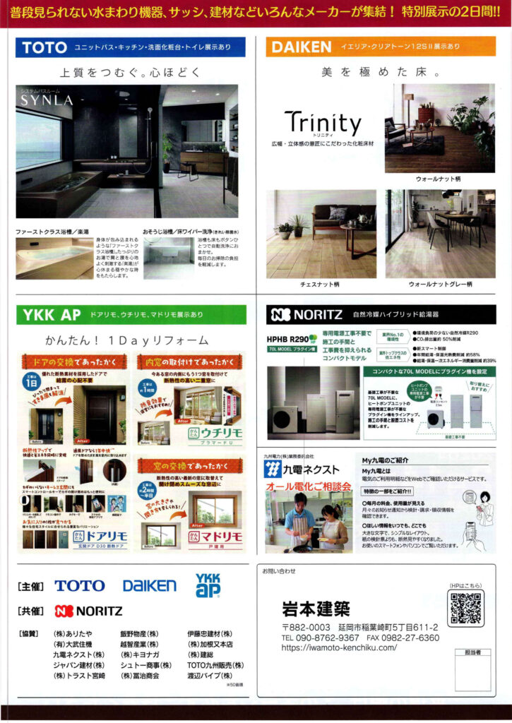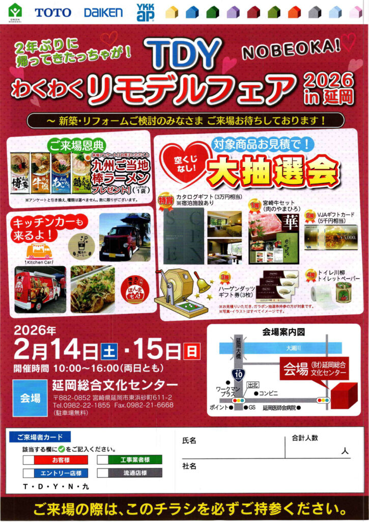 令和8年2月14日(土)15日(日)に延岡総合文化センターにてリモデルの商品の展示会があります。
